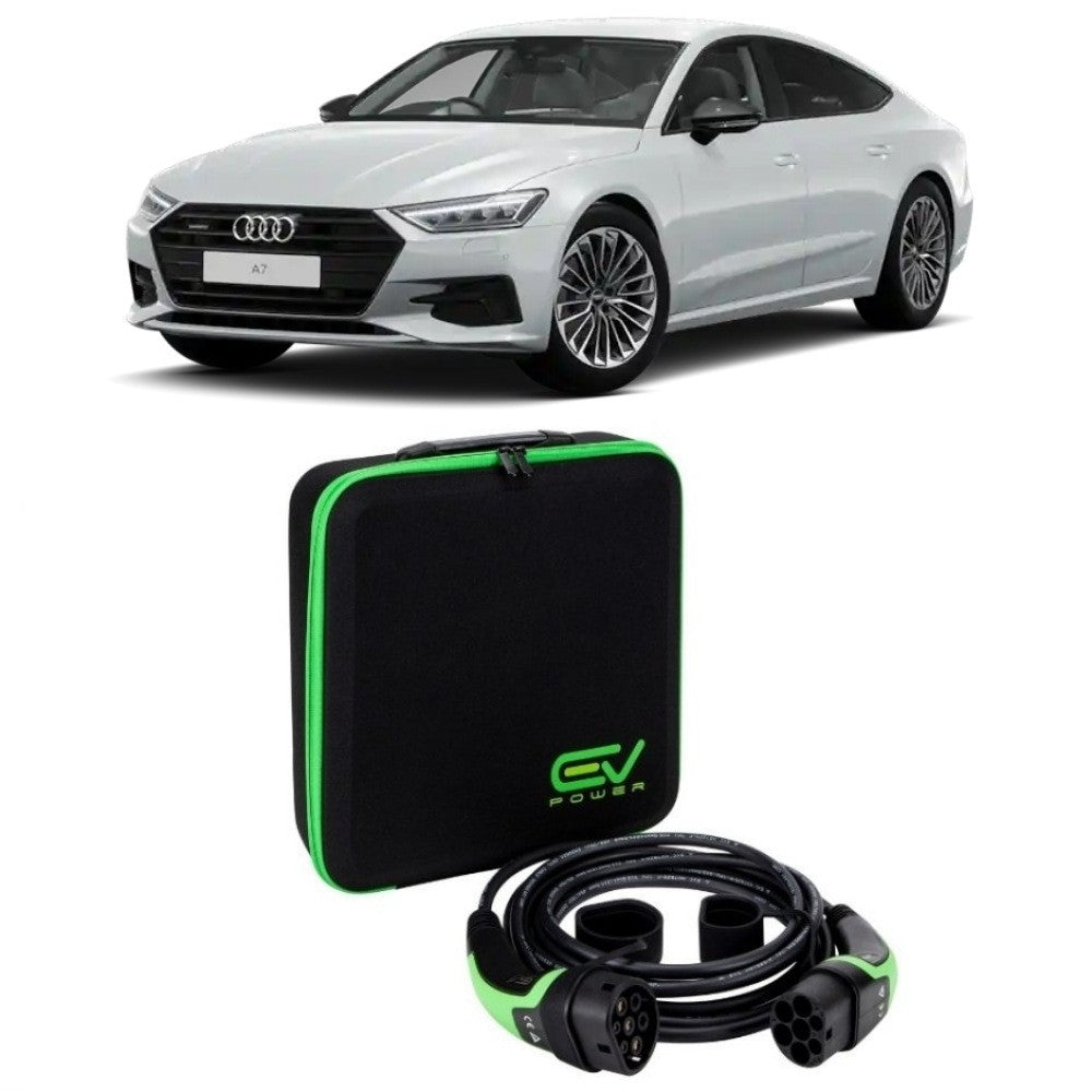Arriving at the same time as its A6, the Audi A7 TFSI e sees another premium executive saloon in PHEV from the German brand. Luxurious interior and strong performance figures come as no surprise. Good driving range and 7kW charging should make it a useful introduction to electric motoring for many an executive.This  Audi A7 TFSI e Charging Cable comes in 2 lengths; 5m and 10m.  The max charge that the vehicle can handle is  7/7.4kW, so we would recommend buying the type 2 – type 2 32amp charging cable, which will fully charge your car in the same time as if you used a 32amp 3phase Charging Cable at 22kW that is approx 2 hours.  These cables are fully compatible with UK and EU standard charging points so are operational at workstations, household or public places. Complete  with rubber cover so you can keep it protected from dust and weather it is completely weatherproof TUV and CE certified. All products come with free delivery and  18 months warranty.