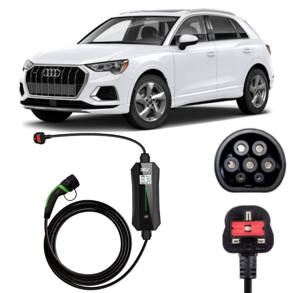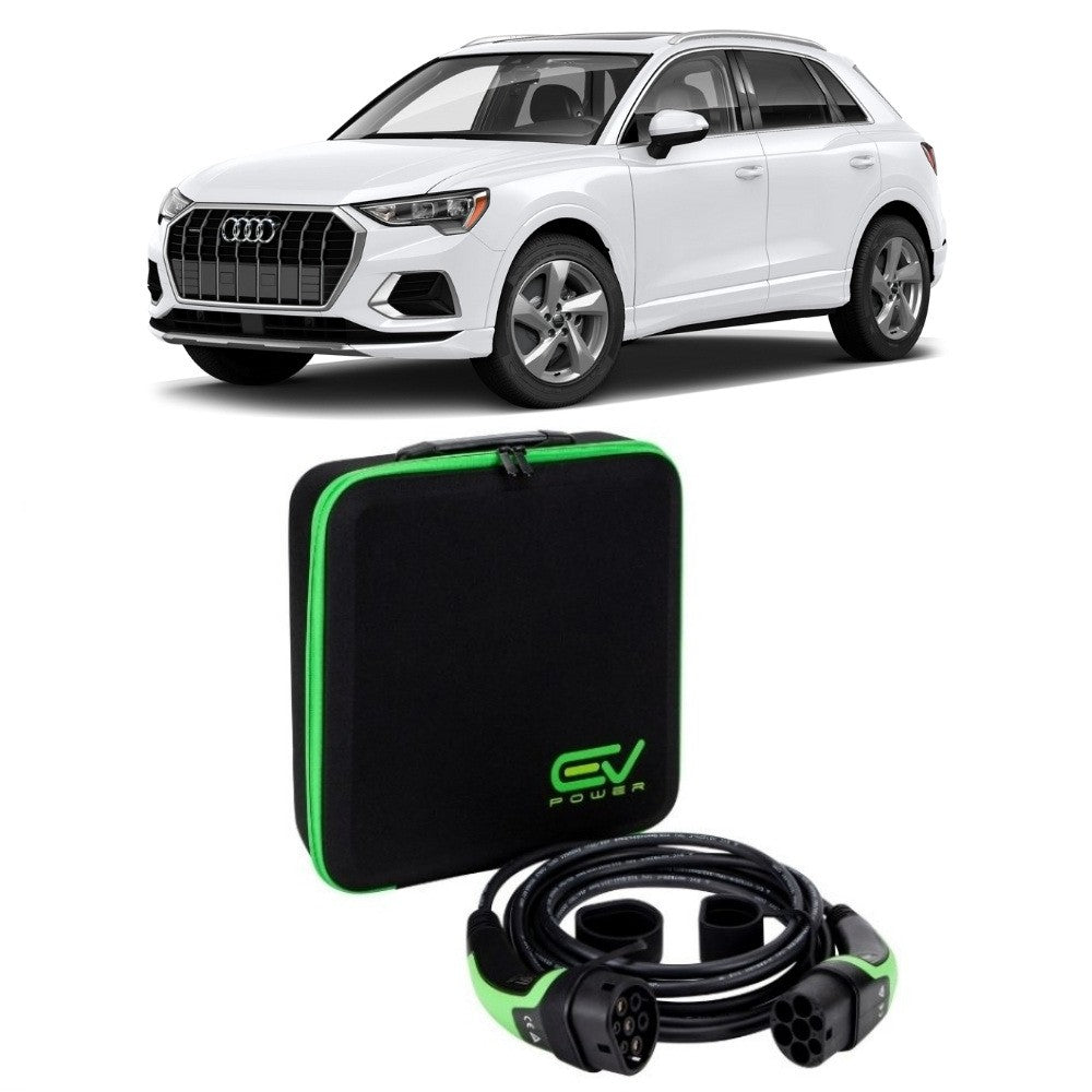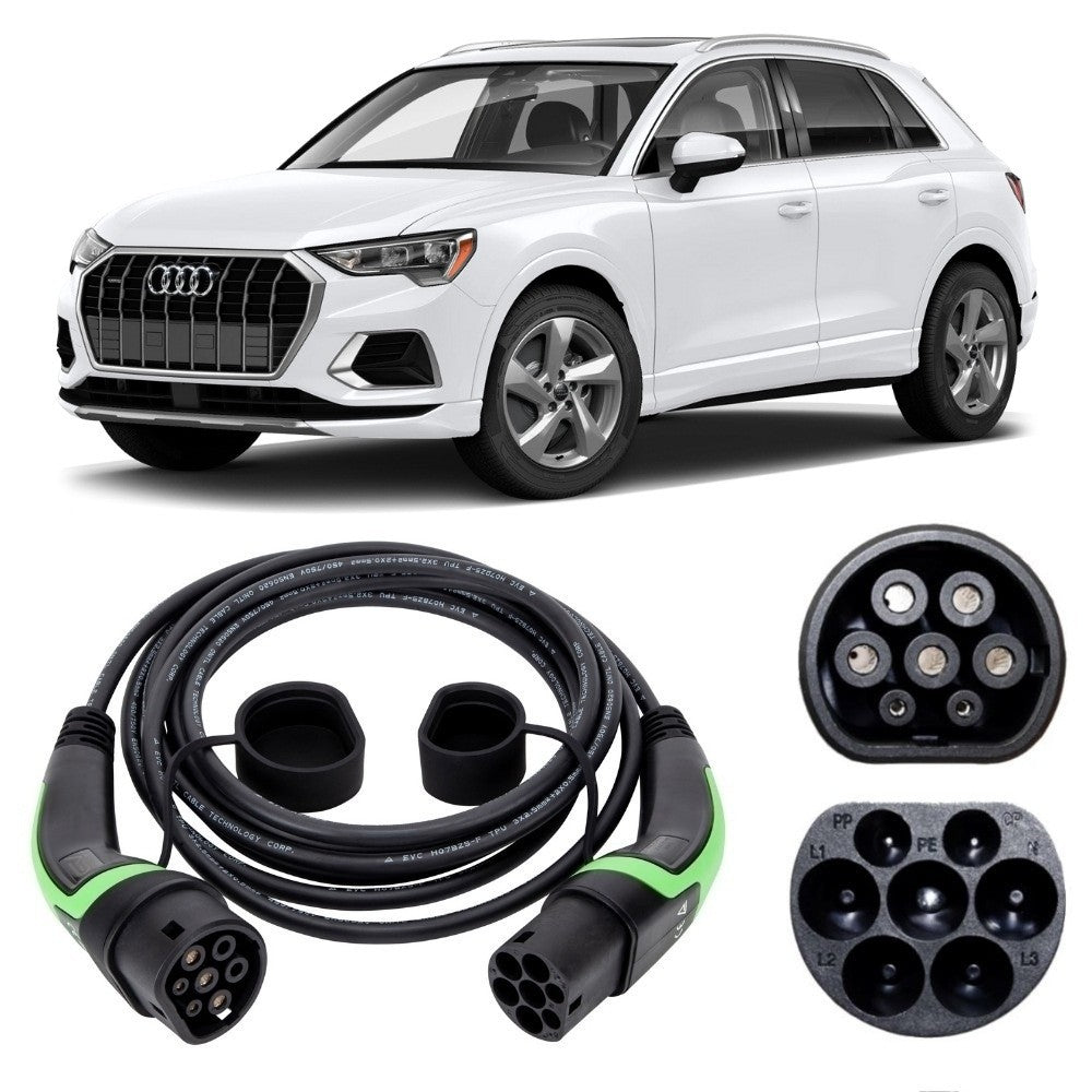 This  Audi Q3 TFSI e is the yet another model to join Audi’s plug-in hybrid range and is their first compact SUV to go hybrid. Sporting the same engine as the VW Golf GTE it offers nifty acceleration and you’ll be able to enjoy several driving modes. The Audi Q3 TFSI e Charging Cables are a Type 2 to Type 2 to charge at charging stations or a Type 2 to 3 pin for use to charge at home with a domestic socket.  They come in 2 lengths; 5m and 10m.  The max charge that the vehicle can handle is  3.6/3.7kW  , so we would recommend buying the type 2 – type 2 16amp charging cable, which will fully charge your car in the same time as if you used a 32amp 3phase Charging Cable at 22kW that is approx 4 hours.  These cables are fully compatible with UK and EU standard charging points so are operational at workstations, household or public places. Complete  with rubber cover so you can keep it protected from dust and weather it is completely weatherproof TUV and CE certified.  All products come with free delivery and  18 months warranty.