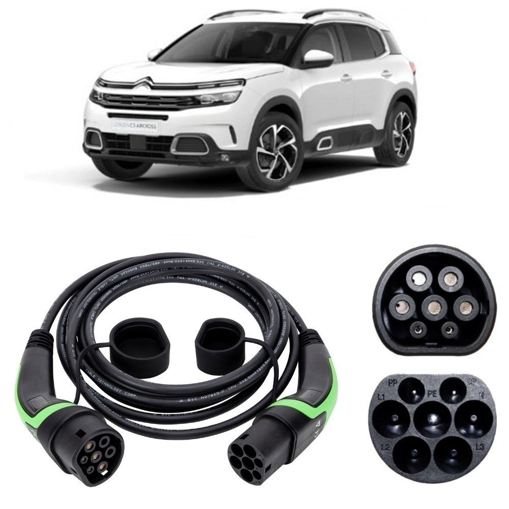 The Citroën C5 Aircross requires a Type 2  to Type 2 EV Charging Cable  to charge at any charging station and the 7.4kW, 32amp EV Charging Cable is the correct option for the Citroen C5 Aircross.  If charging with a 3 Pin EV Charging Cable this will take longer but can be more convenience to use at home.