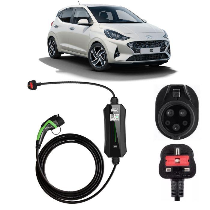 EV Cable Shop can provide the EV Charging Cable to use with your new Hyundai i10.  We have 2 lengths available 5m and 10m, which come  in both 16amp and 32amp.  All charging cables have rubber covers that protect the cable when not in use and are all  have 1 year manufacturers guarnatee and free delivery.