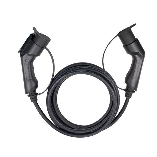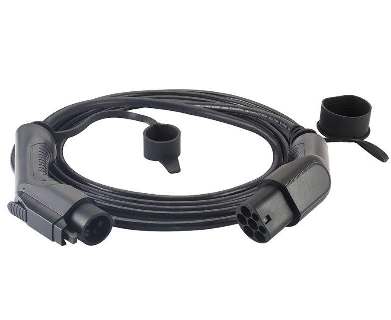 A charging cable that connects electric vehicles with a Type 1 socket to charging points equipped with a Type 2 outlet. This allows EVs with the older Type 1 standard to use more modern charging infrastructure.