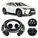 A charging cable that connects electric vehicles with a Type 1 socket to charging points equipped with a Type 2 outlet. This allows EVs with the older Type 1 standard to use more modern charging infrastructure.