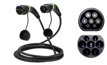 A charging cable that connects electric vehicles with a Type 1 socket to charging points equipped with a Type 2 outlet. This allows EVs with the older Type 1 standard to use more modern charging infrastructure.