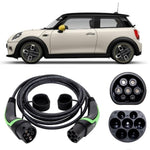 Do you own a Mini Electric? Are you looking to replace your Mini Electric Charging Cable? The Mini Electric has a Type 2 plug connector, so if you are based in the UK or Europe you will require a Type 2 to Type 2 charging cable. This cable is a 1 phase or  3 phase fast charging cable which will allow you to charge your Mini E at 3 different speeds 3kw (Slow), 7 Kw (Fast) or 22kw (3 Phase Fast) depending on the charging stations capabilities. Here at EV Cable Shop, we supply the Mini Electric Charging Cable in 2 sizes (5m and 10m cables). With your order of  an EV Charging Cable you will get free delivery within the UK. Find more specifications below: