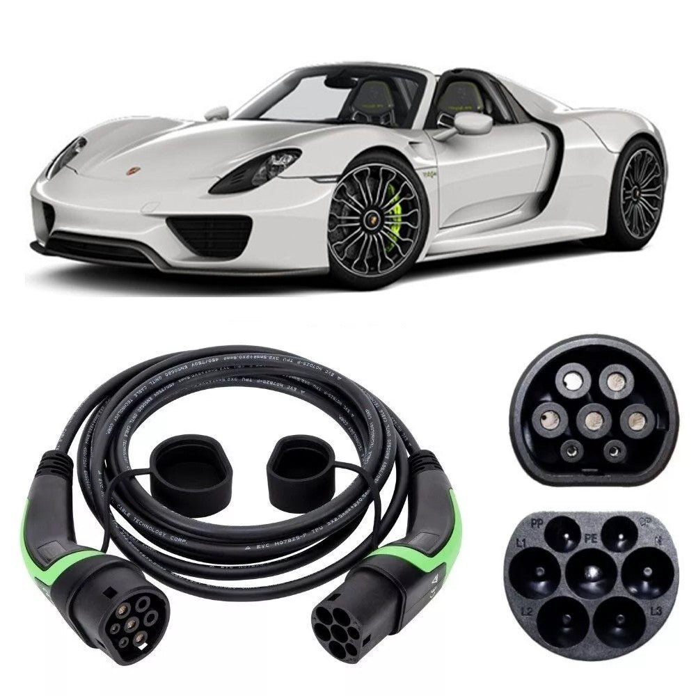The TUV and CE certified 16amp and 32amp 240v Type 2 to Type 2 socketPorsche 918 Spyder EV Charging Cable is available in two lengths:  5 and 10 meters.