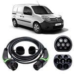 The New Kangoo Van Phase 2 uses a Type 2 to Type 2 charging cable which comes with protective rubber caps that increase the longevity by protecting the EV connectors when the cable is not in use. All our products come with a 2 years warranty and are TUV and CE certified. We stock the Type 2 cables in 2 different lengths 5m and 10m cable. The cables won’t charge faster than the max. charging capacity your vehicle can handle, which is 7.4kW. They fit all standard workstations and public charging units with a Type 2 socket, as well as the wallbox (for recharging from home).  Included with every purchase  is a one year manufacturers warranty and we also provide free delivery.