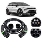 A charging cable that connects electric vehicles with a Type 1 socket to charging points equipped with a Type 2 outlet. This allows EVs with the older Type 1 standard to use more modern charging infrastructure.