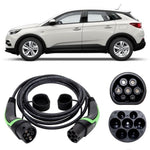 The Hybrid Grandland X Hybrid combines a 1.6 litre petrol engine and two electric motors, with a  3.7kW or a 7.4kW on board charger.  The Grandland X Hybrid requires a Type 2 to Type 2 EV Charging Cable which we stock in 2 sizes: 5m and 10m, with other lengths available on request.  All our EV Charging Cables are compatible with all European and UK standard charging points and are approved and certified by TUV and CE, completely weatherproof for long-life and durabiltiy.  All our products have rubber caps to protect the cable connectors when not in use.  With a 1 year manufacturers warranty and free delivery within the UK.
